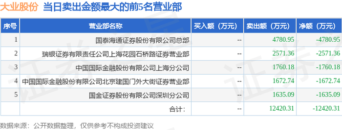 1月7日大业股份(603278)龙虎榜数据:游资瑞鹤仙上榜