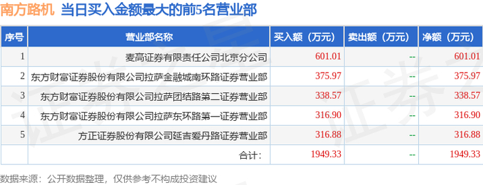 9月22日南方路机(603280)龙虎榜数据