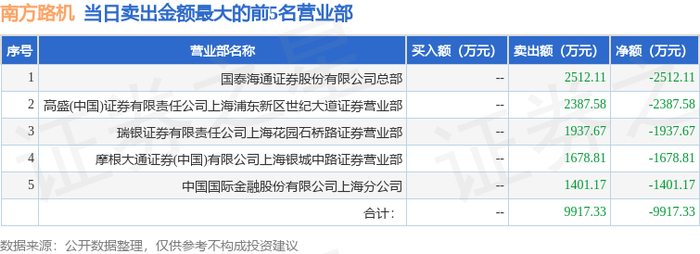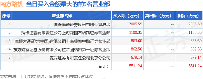 证券之星消息,沪深交易所2025年11月26日公布的交易公开信息显示,南方路机(603280)因有价格涨跌幅限制的日换手率达到20%的前五只证券登上龙虎榜。此次是近5个交易日内第3次上榜。