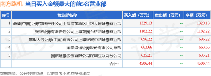 11月27日南方路机(603280)龙虎榜数据