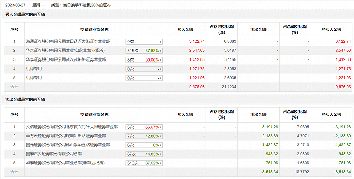 具体来看,机构合计净买入2492.81万元。此外,海通证券营口辽河大街证券营业部、华泰证券总部分别买入3122.74万元、2547.63万元;安信证券北京复兴门外大街证券营业部、申万宏源证券有限公司深圳彩田路证券营业部分别卖出3191.28万元、2133.89万元。