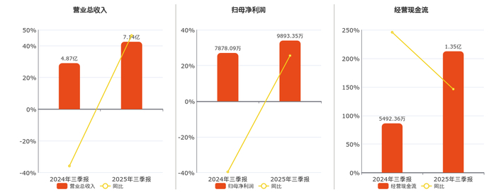公司营业总收入为7.14亿元。归母净利润为9893.35万元。经营活动现金净流入为1.35亿元。