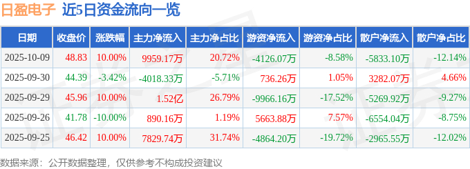 10月9日的资金流向数据方面,主力资金净流入9959.17万元,占总成交额20.72%,游资资金净流出4126.07万元,占总成交额8.58%,散户资金净流出5833.1万元,占总成交额12.14%。