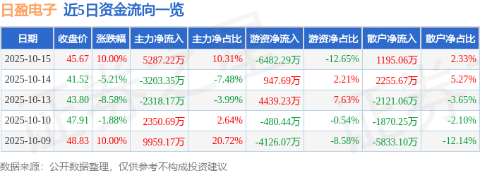 10月15日的资金流向数据方面,主力资金净流入5287.22万元,占总成交额10.31%,游资资金净流出6482.29万元,占总成交额12.65%,散户资金净流入1195.06万元,占总成交额2.33%。
