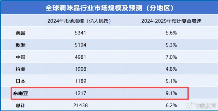 一方面,东南亚的华人多,对中式调味品的接受度较高;另一方面,东南亚因人口增长与城市化加速,调味品需求越来越旺,预计2024-2029年调味品市场规模复合增长率可达9.1%。