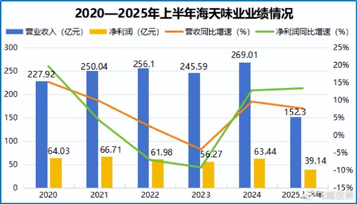 2024年,海天味业实现营收269亿,创下新高;净利润也来到了63亿,离2021年的峰值67亿已然不远。