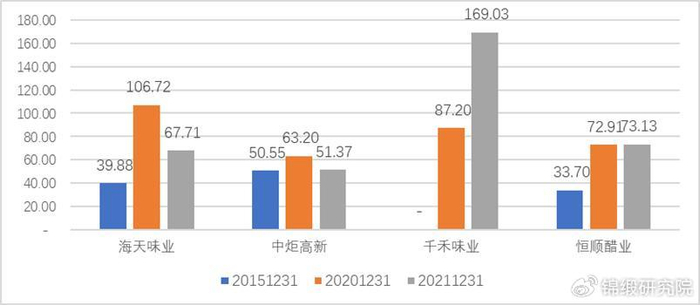 与其说海天味业一枝独秀,不如说是资金抱团消费股下的鸡犬升天。中炬高新、千禾味业一样享有高估值溢价。回头看是过于乐观,但当时市场将短期内的提价+高速增长理解成永续模式。