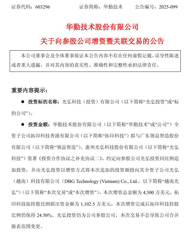 华勤技术表示,此次增资有利于公司完善产业链相关布局,整合各方优势资源,提升公司持续发展能力和综合竞争优势。