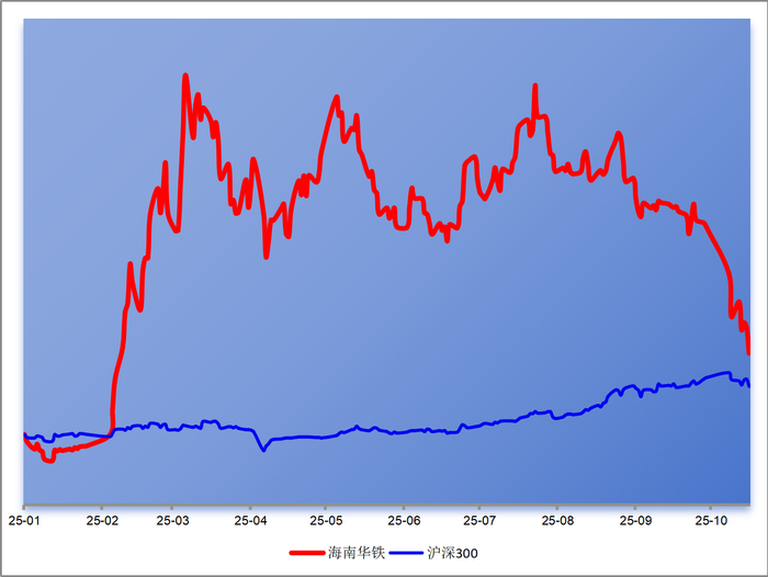 自2025年2月—3月4日即原协议披露日,公司股价累计涨幅达85.03%。3月5—7日,海南华铁股价连续三个交易涨停。3月7日报收12.79元/股,创下历史新高。10月9—10日,即解除协议公告披露之后的第一、第二个交易日,海南华铁股价接连跌停。10月17日,海南华铁下跌6.96%,报收7.09元/股;较3月7日的12.79元/股下跌44.74%。