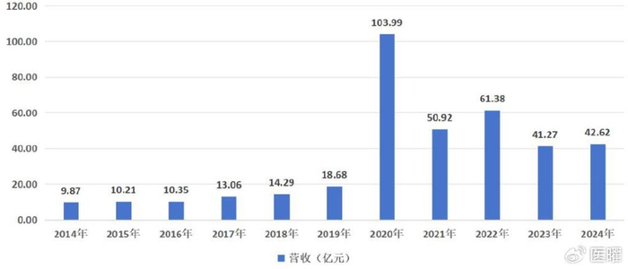 在2020年之前,振德医疗虽业绩增长稳定,但整体营收规模较小,并没有太多值得称道的地方。与大多数低值耗材企业一样,疫情成为振德医疗的发展催化剂。口罩、防护服、隔离衣等感染防护类物资需求激增,振德医疗抓住疫情的机遇,2020年实现营业收入103.99亿元,同比增长456.75%,实现归母净利润为25.49亿元,激增15.25倍。