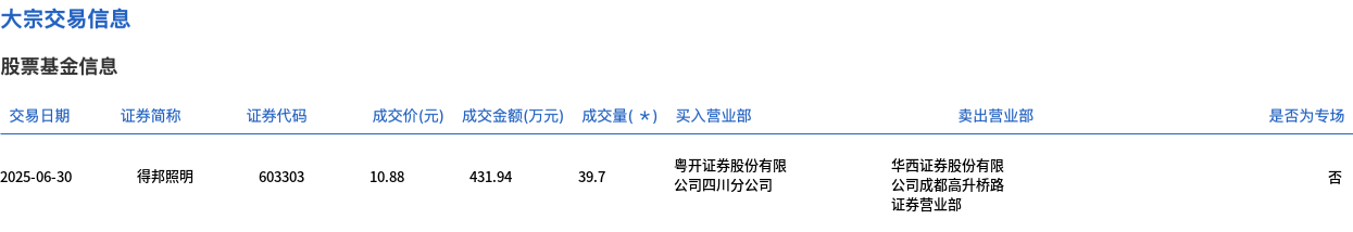 得邦照明今日大宗交易折价成交39.7万股,成交额431.94万元