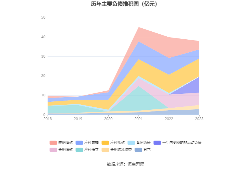 负债重大变化方面,截至2023年年末,公司一年内到期的非流动负债较上年末增加130705.09%,占公司总资产比重上升8.05个百分点;短期借款较上年末减少59.43%,占公司总资产比重下降6.81个百分点;应付票据较上年末减少45.49%,占公司总资产比重下降4.28个百分点;长期递延收益较上年末增加100.79%,占公司总资产比重上升1.04个百分点。