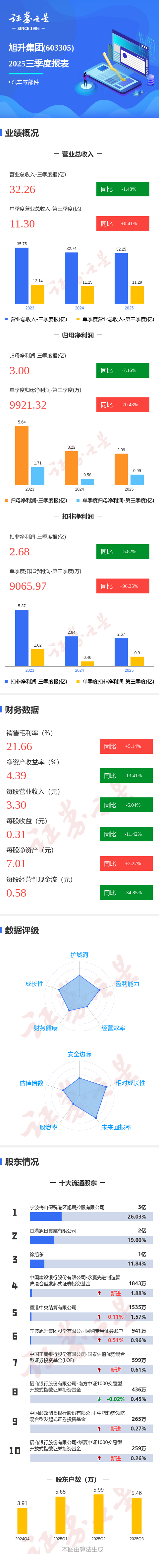 图解旭升集团三季报:第三季度单季净利润同比增长70.43%