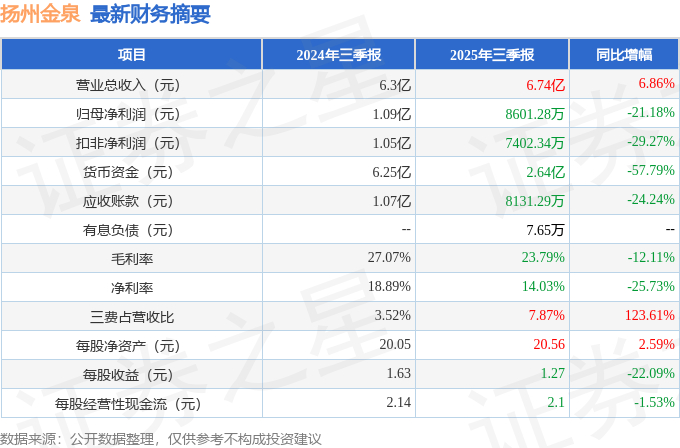 扬州金泉(603307)2025年三季报简析:增收不增利