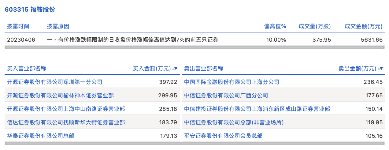 4月6日,福鞍股份今日涨停,龙虎榜数据显示,上榜营业部席位全天成交2135.33万元,占当日总成交金额比例为37.92%。其中,买入金额为1345.97万元,卖出金额为789.36万元,合计净买入556.61万元。