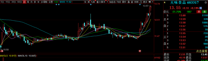 如今,天味食品又将目标转向了港交所。或受赴港IPO消息的影响,天味食品股价走高,自10月31日以来的9个工作日,股价已上涨18.76%。11月13日,其收报13.55元/股,盘中迎来近半年高峰13.57元/股,总市值144.3亿元。