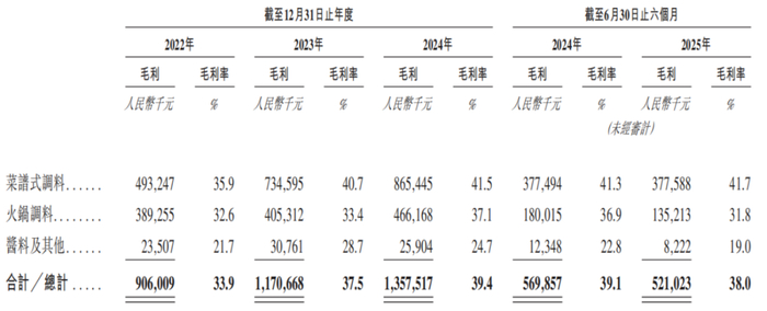 此外,酱料及其他产品收入则呈持续下滑态势,2023年-2025年上半年,同比分别下降1.05%、2.19%、19.92%。