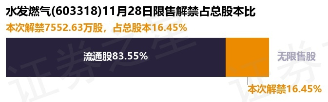 水发燃气(603318)7552.63万股限售股将于11月28日解禁,占总股本16.45%