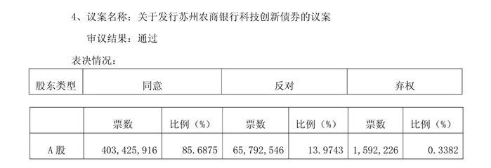 苏农银行科创债发行议案通过,近14%股东投出反对票