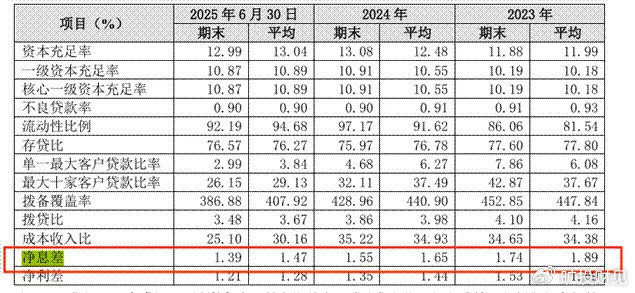 资本效率和扩大规模的成果不匹配,导致增长质量不理想。根据2025年的第三季度财务得知,该行资产总额比去年同期增长了7.83%,总资产达到了2267.49亿元,但是经营效益却没有相应的提高。更值得注意的是衡量资本配置效率的关键指标净息差也在持续下降,其在2025年中期报告显示该指标只有1.39%,同比降低了16bps。以上各项财务指标都足以证明银行新增资本的边际产出效应正在递减,规模扩张对盈利水平的边际促进作用已明显弱化。