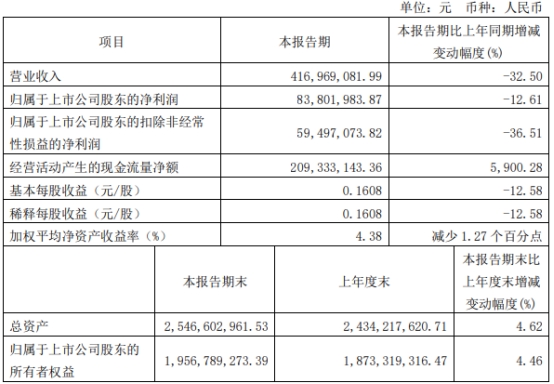 福蓉科技2023年第一季度营业收入为4.17亿元,同比下降32.50%;归属于上市公司股东的净利润为8380.20万元,同比下降12.61%:归属于上市公司股东的扣除非经常性损益的净利润为5949.71万元,同比下降36.51%;经营活动产生的现金流量净额为2.09亿元,同比增加5,900.28%。