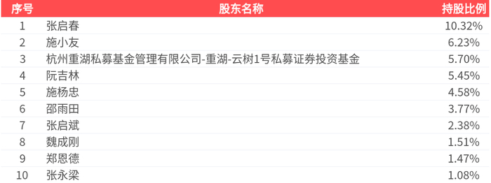 公司股东户数为1.35万户,前十大股东持股数量为8590.80万股,占总股本比例为42.49%,前十大股东持股情况如下: