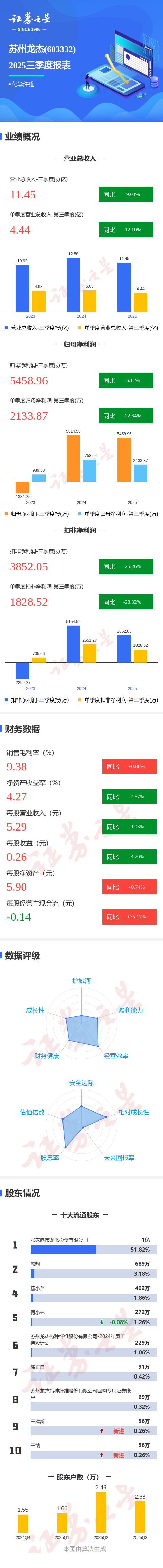 图解苏州龙杰三季报:第三季度单季净利润同比下降22.65%
