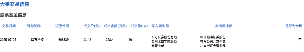 四方科技今日大宗交易折价成交20万股,成交额228.4万元