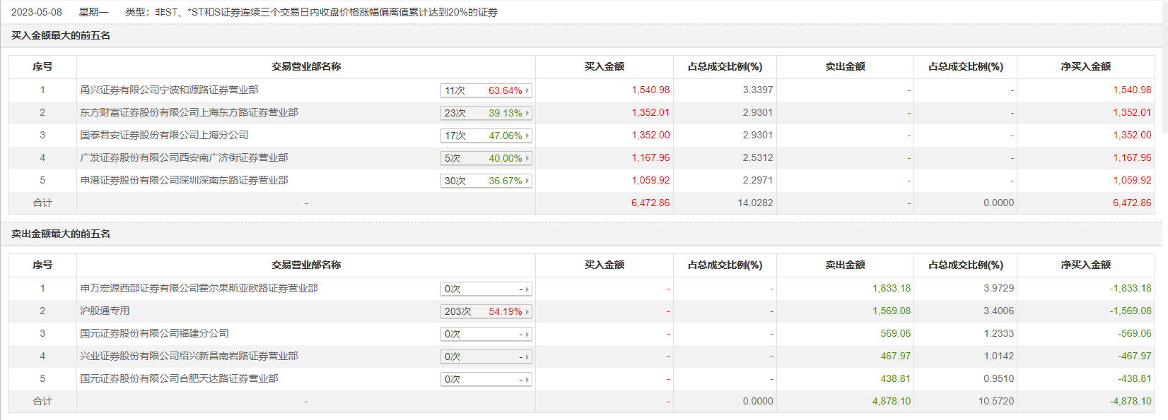 具体来看,甬兴证券有限公司宁波和源路证券营业部、东方财富证券上海东方路证券营业部分别买入1540.98万元、1352.01万元;申万宏源西部证券有限公司霍尔果斯亚欧路证券营业部、沪股通专用分别卖出1833.18万元、1569.08万元。