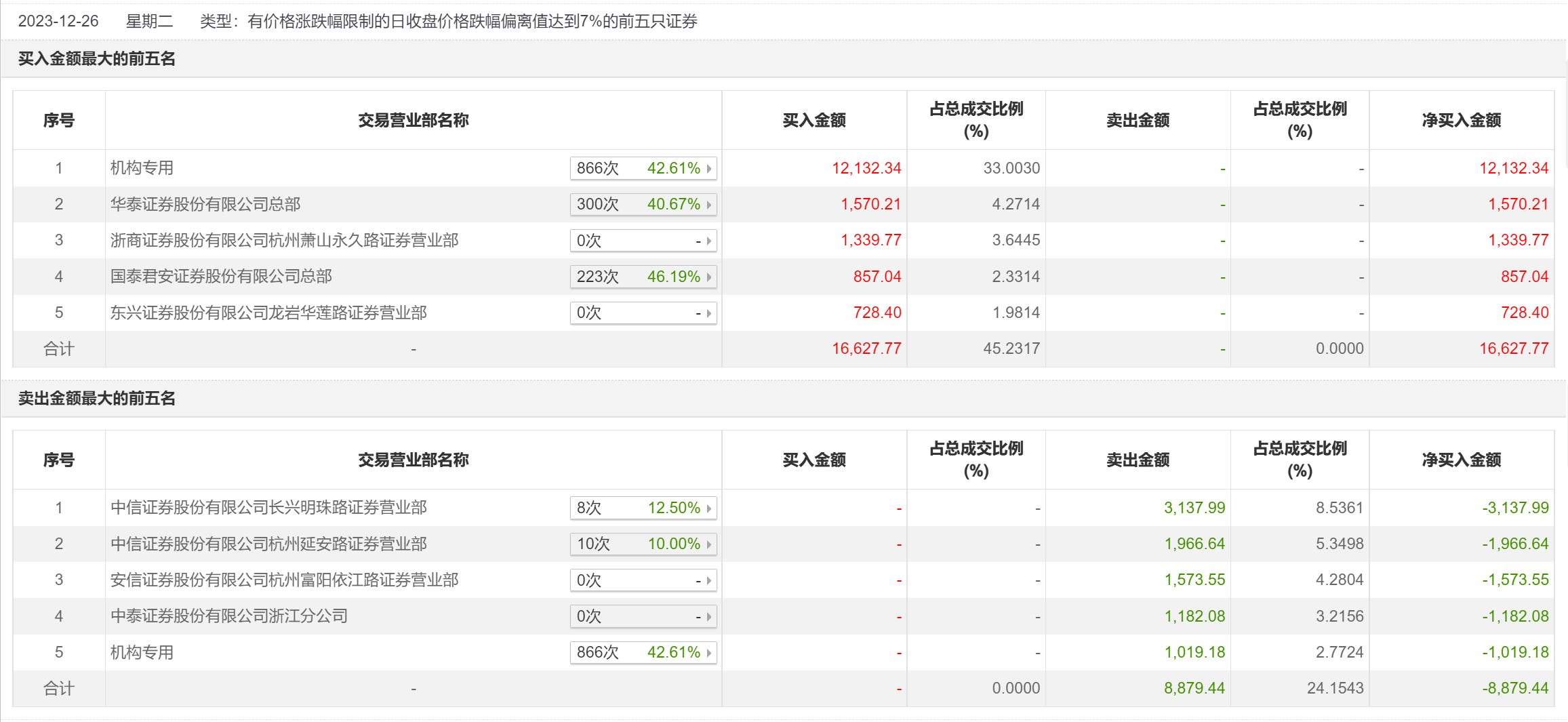 龙虎榜丨华达科技今日跌停,一机构净买入1.21亿元