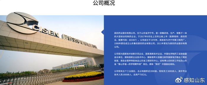 官网显示,辰欣药业股份有限公司位于山东省济宁市,是一家集研发、生产、销售于一体的大型综合性制药企业,于2017年9月在上交所主板上市(股票简称:辰欣药业,股票代码:603367)。公司成立于1970年,其前身为济宁市第三制药厂,1998年更名成立山东鲁抗辰欣药业有限公司,2011年更名为辰欣药业股份有限公司。该公司现有五个工业园区,总占地面积近2000亩,现有员工3000余人,其中专业技术人员1000余人,总资产75亿元。公司产品涉及大容量注射剂、小容量注射剂、冻干粉针剂、片剂、胶囊、膏剂、滴剂、原料药等多种剂型400多个规格,涵盖基础输液、营养型输液、治疗型输液、肿瘤、抗菌抗病毒、呼吸系统、消化系统、神经系统、肝病、慢病等用药领域,销售网络遍布全国以及世界50多个国家和地区。