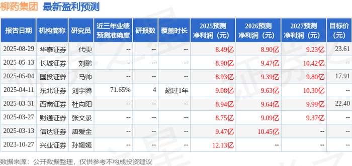证券之星数据中心根据近三年发布的研报数据计算,东北证券刘宇腾研究员团队对该股研究较为深入,近三年预测准确度均值为71.65%,其预测2025年度归属净利润为盈利9.08亿,根据现价换算的预测PE为8.2。