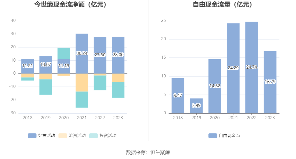 进一步统计发现,2023年公司自由现金流为16.79亿元,相比上年同期下降32.12%。