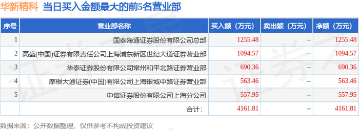 9月19日华新精科(603370)龙虎榜数据
