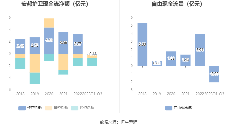 进一步统计发现,2023年前三季度公司自由现金流为-2.04亿元,上年同期为0.81亿元。