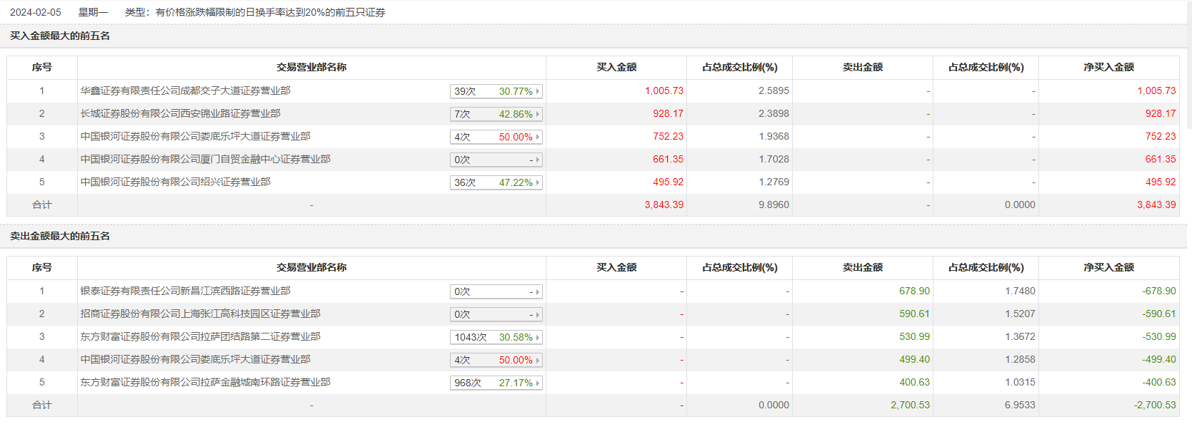 具体来看,知名游资现身龙虎榜,赵老哥(中国银河证券股份有限公司绍兴证券营业部)净买入495.92万元。此外,华鑫证券成都交子大道证券营业部、长城证券西安锦业路证券营业部分别买入1005.73万元、928.17万元;银泰证券新昌江滨西路证券营业部、招商证券上海张江高科技园区证券营业部分别卖出678.90万元、590.61万元。