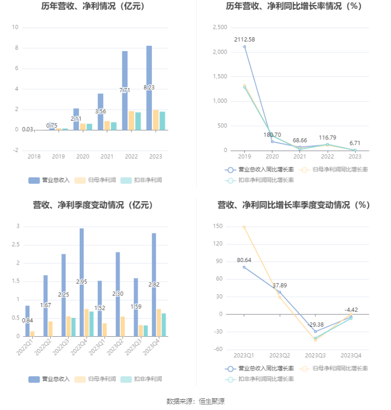 2023年全年,公司研发投入金额为7762.36万元,同比增长35.55%;研发投入占营业收入比例为9.44%,相比上年同期上升2.01个百分点。此外,公司全年研发投入资本化率为0。