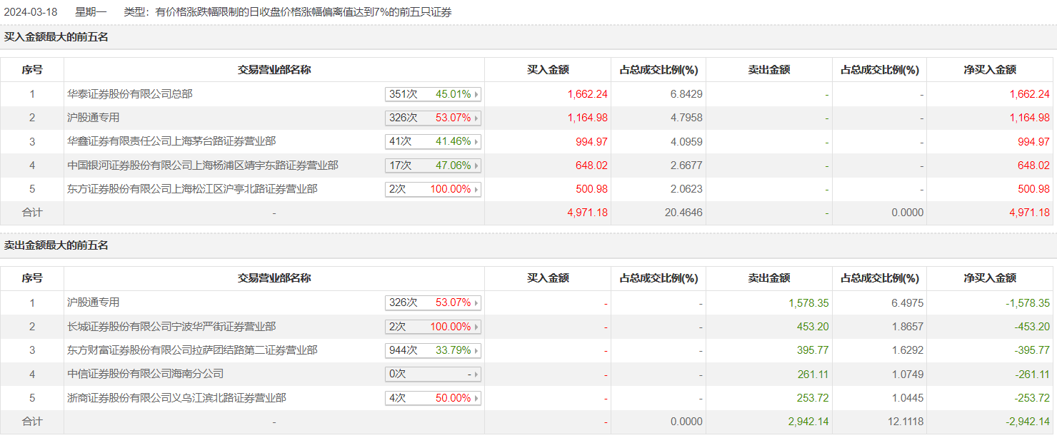 东方时尚3月18日涨停,龙虎榜数据显示,上榜营业部席位全天成交7913.32万元,占当日总成交金额比例为32.58%。其中,买入金额为4971.18万元,卖出金额为2942.14万元,合计净买入2029.04万元。