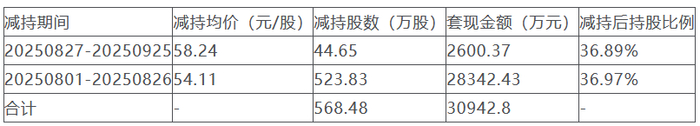 据新浪财经信息,数据显示,胡荣达最初持股2.31亿股,占总股本的37.83%。胡荣达从2025年8月1日至9月25日,累计减持公司股票568.48万股,累计套现约3.09亿元。
