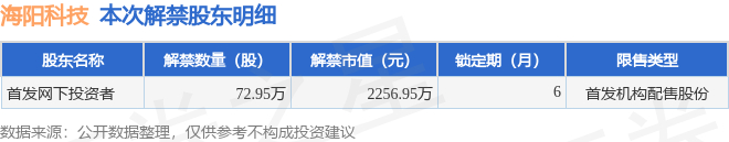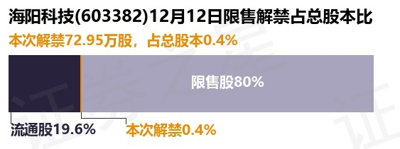 海阳科技(603382)72.95万股限售股将于12月12日解禁,占总股本0.4%