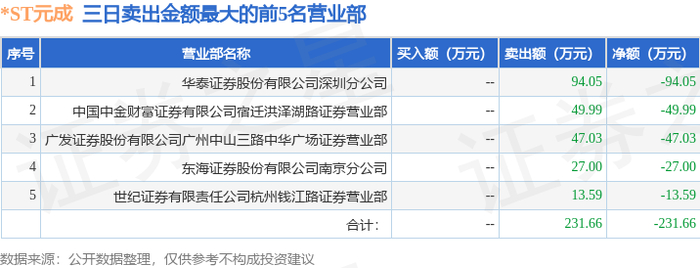 证券之星消息,沪深交易所2025年10月28日公布的交易公开信息显示,*ST元成(603388)因ST、*ST证券连续三个交易日内收盘价格跌幅偏离值累计达到12%的证券登上龙虎榜。此次是近5个交易日内第2次上榜。