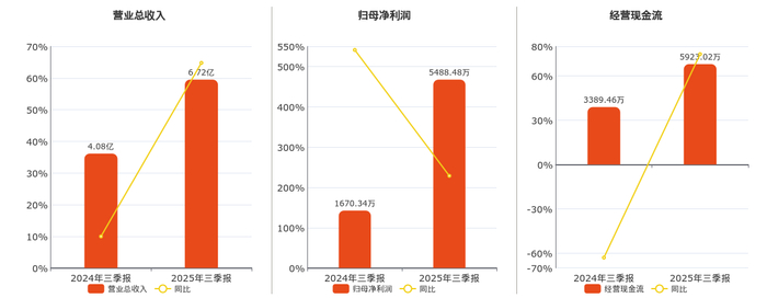 公司营业总收入为6.72亿元,在已披露的同业公司中排名第155。归母净利润为5488.48万元,在已披露的同业公司中排名第139。经营活动现金净流入为5923.02万元,在已披露的同业公司中排名第140。