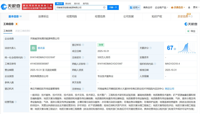 雷达财经讯,天眼查工商信息显示,近日,河南省深地清洁能源有限公司成立,法定代表人为陈永泽,注册资本500万人民币,经营范围包括工程和技术研究和试验发展、基础地质勘查、地质勘查技术服务等。股权全景穿透图显示,该公司由清洁能源产业技术研究院、新天然气(603393)旗下河南鑫泰清洁能源科技有限公司、神火股份(000933)共同持股。