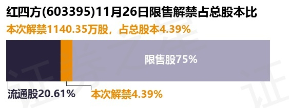 红四方(603395)1140.35万股限售股将于11月26日解禁,占总股本4.39%