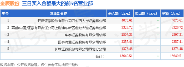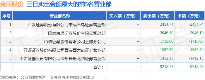 11月11日金辰股份(603396)龙虎榜数据