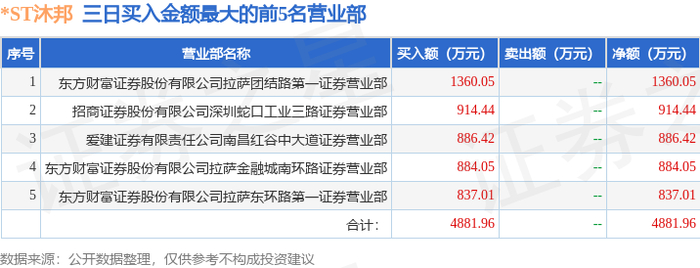 证券之星消息,沪深交易所2025年10月16日公布的交易公开信息显示,*ST沐邦(603398)因ST、*ST证券连续三个交易日内收盘价格跌幅偏离值累计达到12%的证券登上龙虎榜。此次是近5个交易日内第2次上榜。
