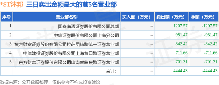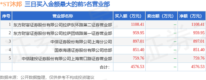 证券之星消息,沪深交易所2025年11月3日公布的交易公开信息显示,*ST沐邦(603398)因ST、*ST证券连续三个交易日内收盘价格涨幅偏离值累计达到12%的证券登上龙虎榜。此次是近5个交易日内第2次上榜。