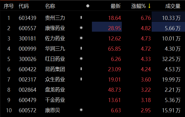 上证报中国证券网讯 5月19日,中药板块拉升走高,截至9:58,贵州三力涨近7%,康缘药业、华润三九、佐力药业、红日药业等涨超4%。