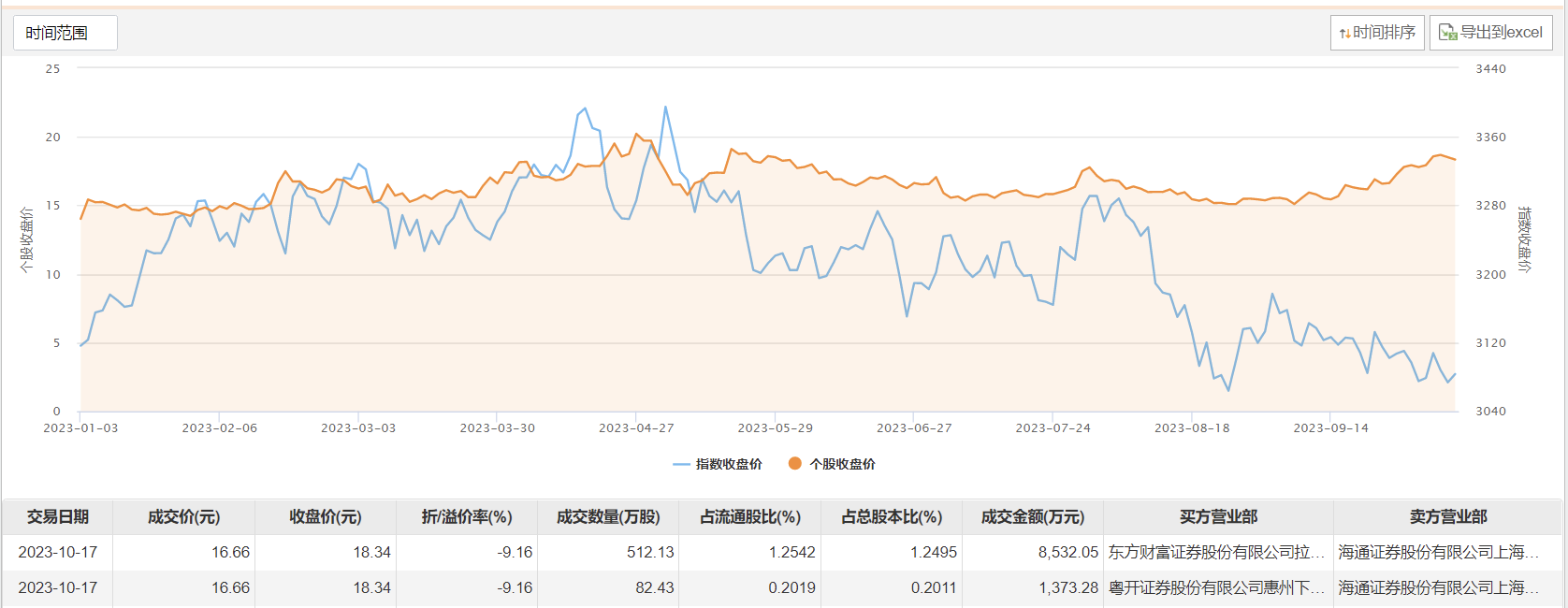 今日大宗交易成交594.56万股,成交额9905.33万元,占当日总成交额的45.13%,成交价16.66元,较市场收盘价折价9.16%。