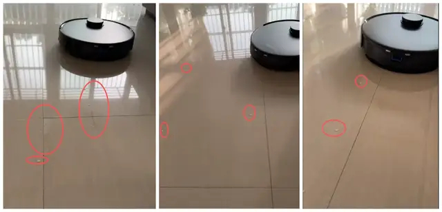 从吴女士提供的视频中可见扫地机器人工作时地面会出现密集的滴落水珠。“扫地机器人拖完地以后,地面上全是水珠。”吴女士告诉经济导报记者,每次拖完后还得拿抹布从头抹到尾,“那我要它拖地干吗,没事找事啊?”